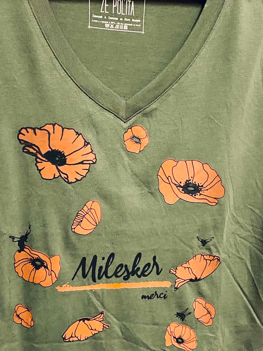 T-shirt femme col rond fluide - MILESKER/MERCI