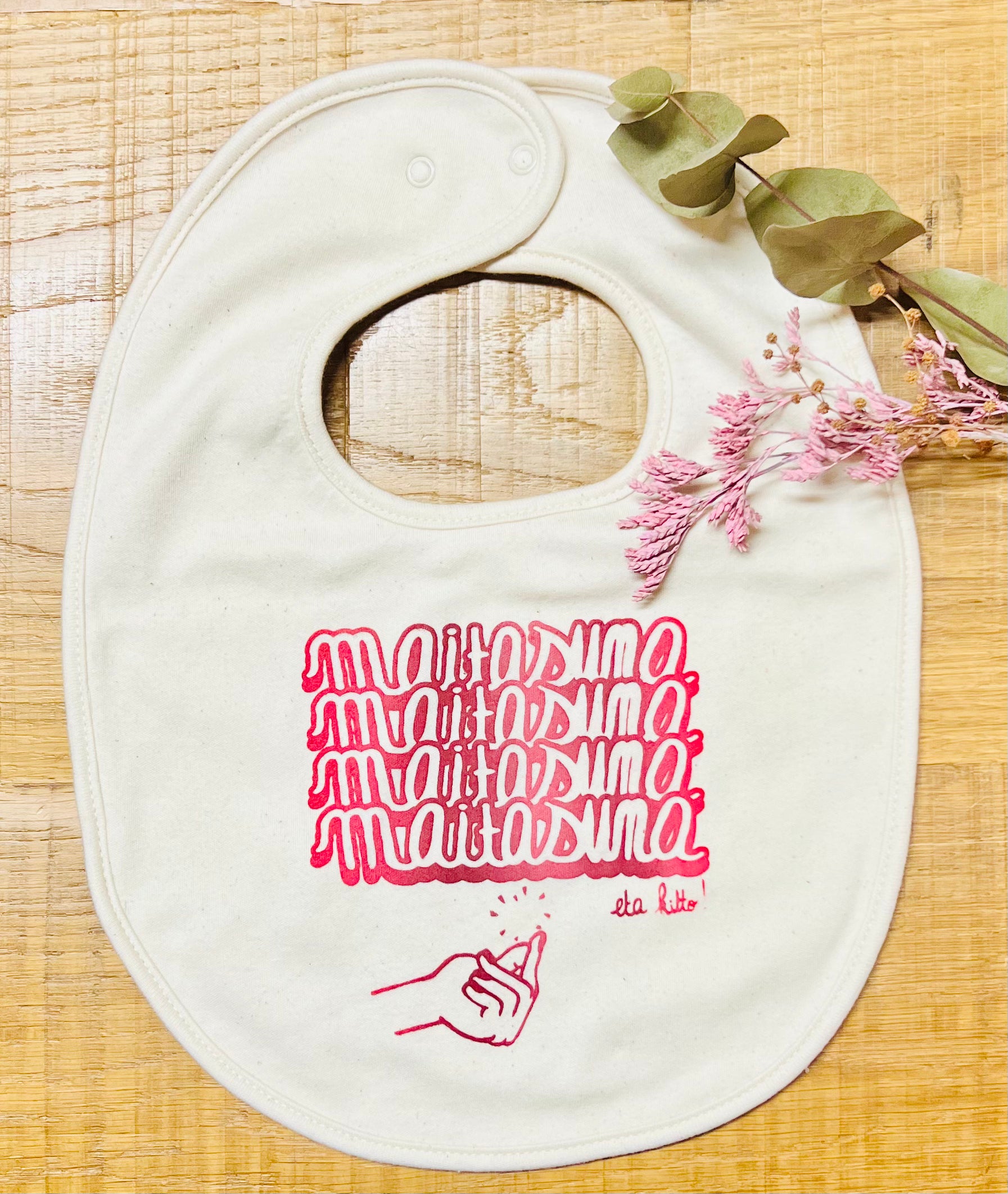 ¡Babero de algodón orgánico MAITASUNA ETA KITTO!