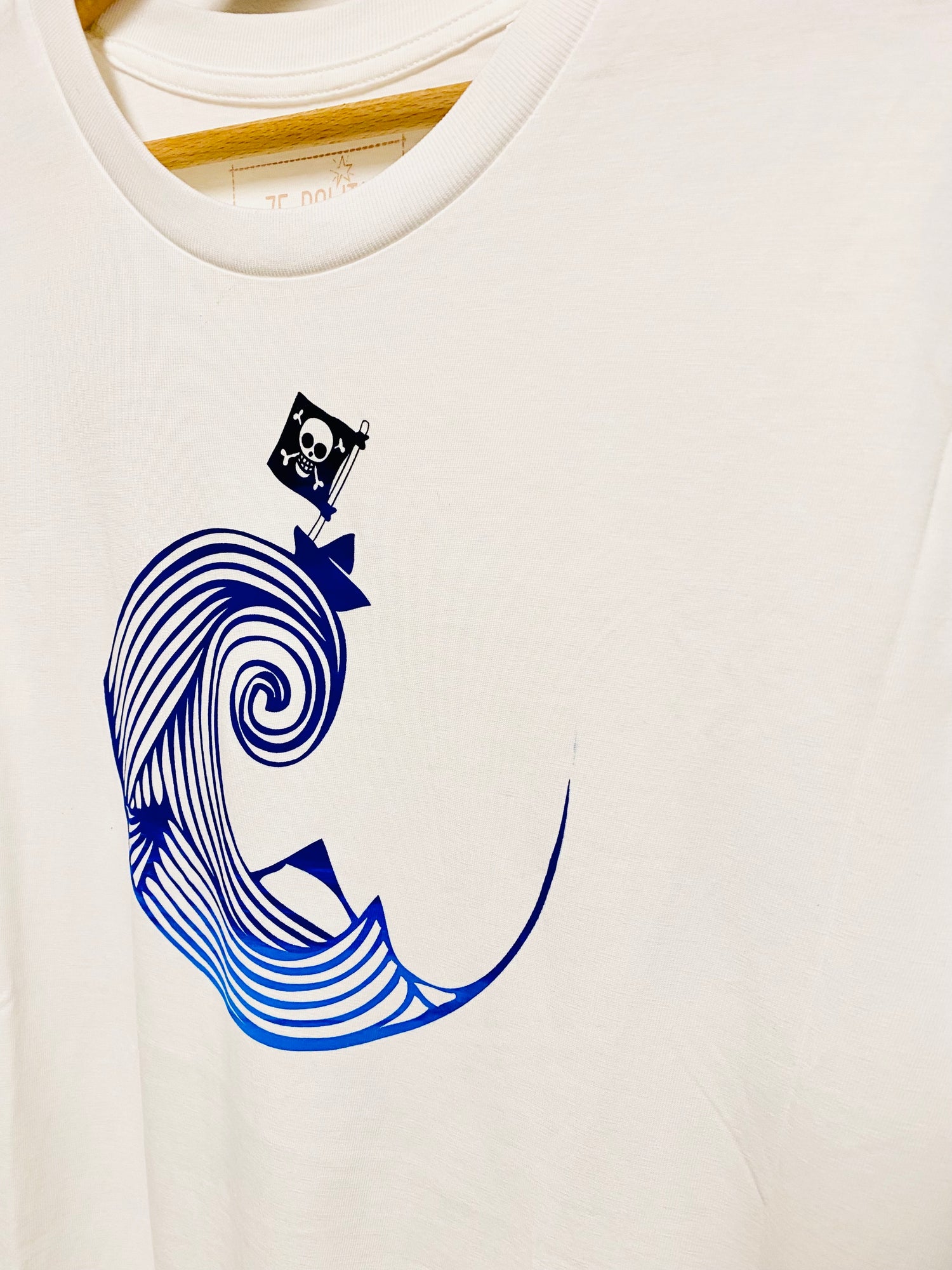 Une vague graphique en référence à celle de Kanagawa, célèbre estampe japonaise du peintre, Hokusai.