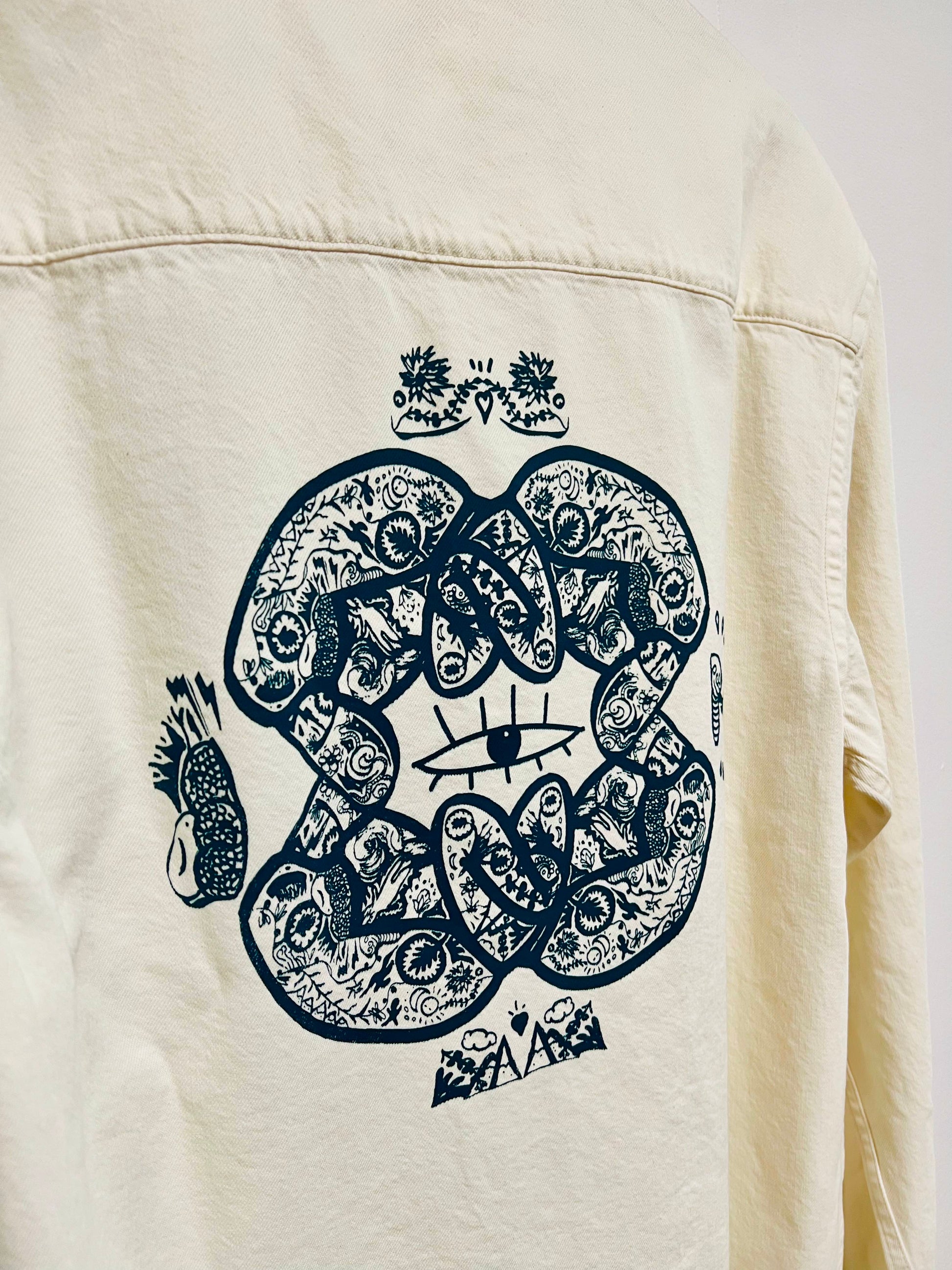 Si ici apparaît la mère de tout, j'ai rempli mon trait de petits dessins à la fois intuitifs et orientés vers la représentation d'éléments et personnages caractéristiques de la mythologie basque et de la nature.