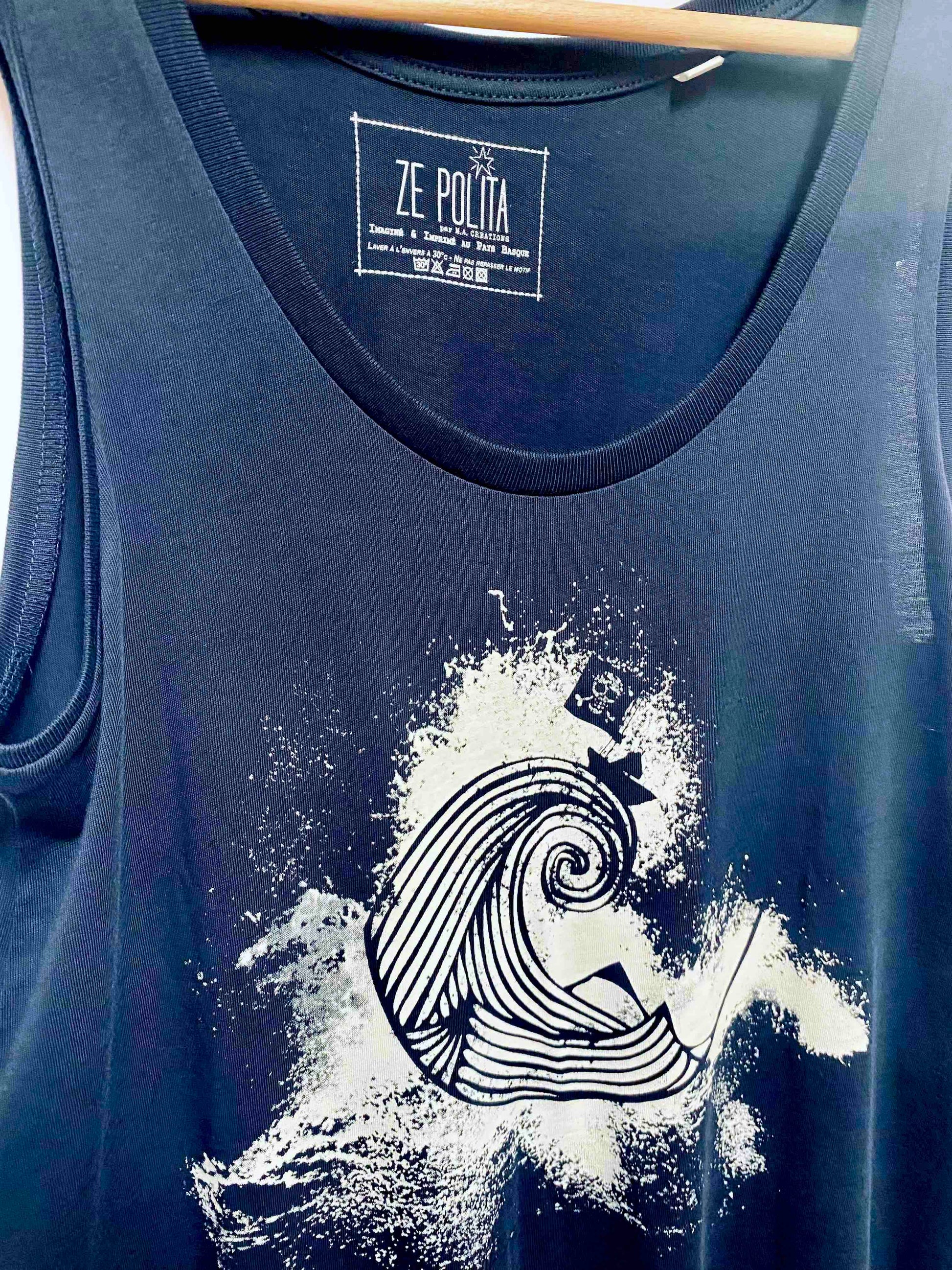 Une vague graphique en référence à celle de Kanagawa, célèbre estampe japonaise du peintre, Hokusai.