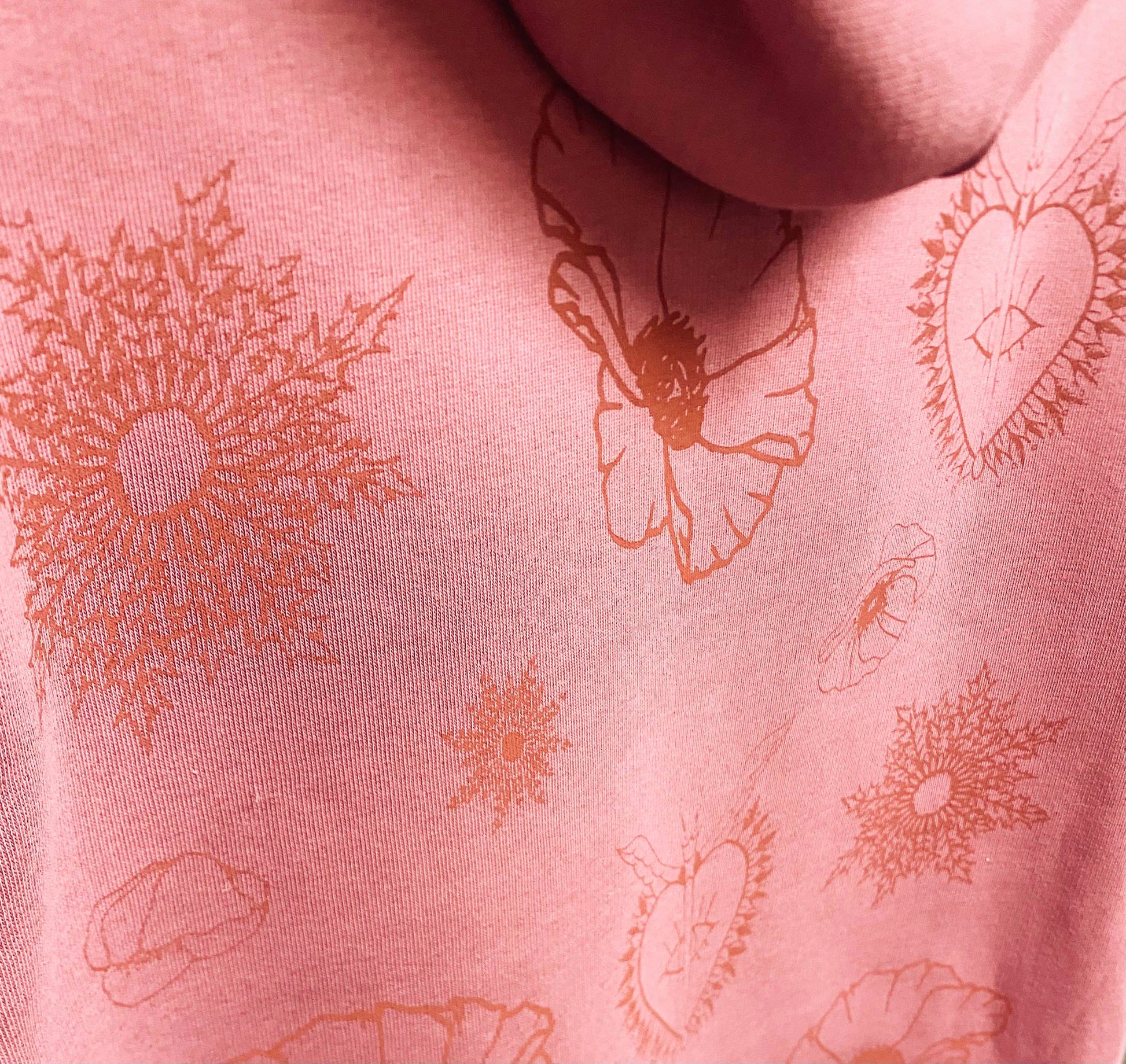 Sérigraphié en terra cota* par nos soins à la main avec des encres à eau.