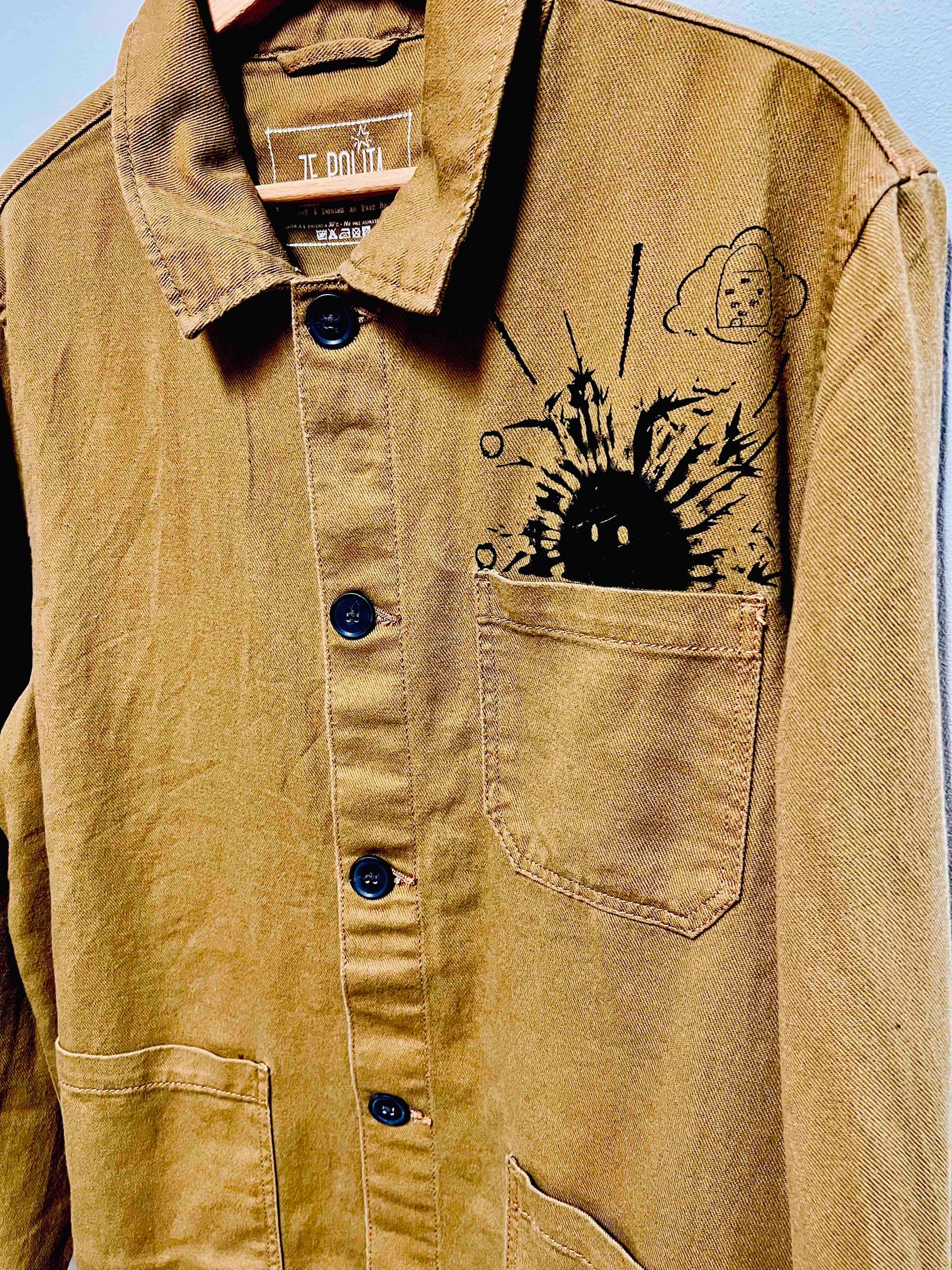 Sérigraphié en noir* par nos soins à la main avec des encres à eau (éco-labellisées, sans solvant, sans métaux lourds, ni autre substance nocive ni pour l'homme ni pour l'environnement.